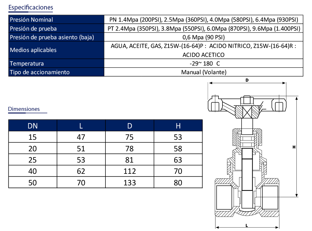 / VÁLVULA DE COMPUERTA BRONCE